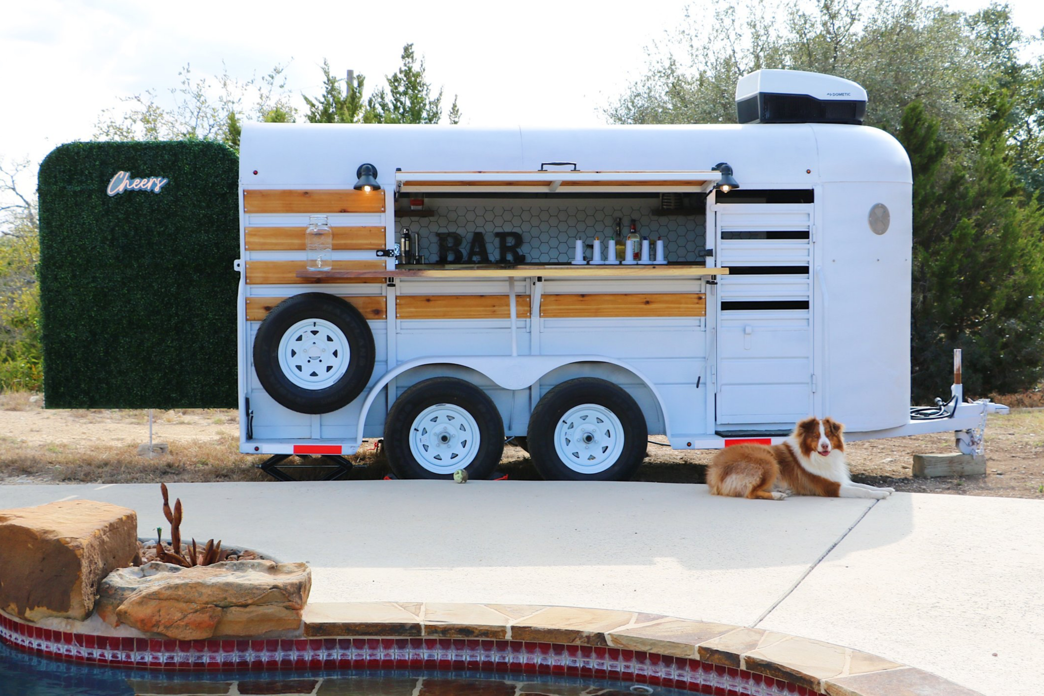 With a perfect blend of rustic charm and modern amenities, the Tack Room Tavern traveling trailer serves as the ideal backdrop for any event.
